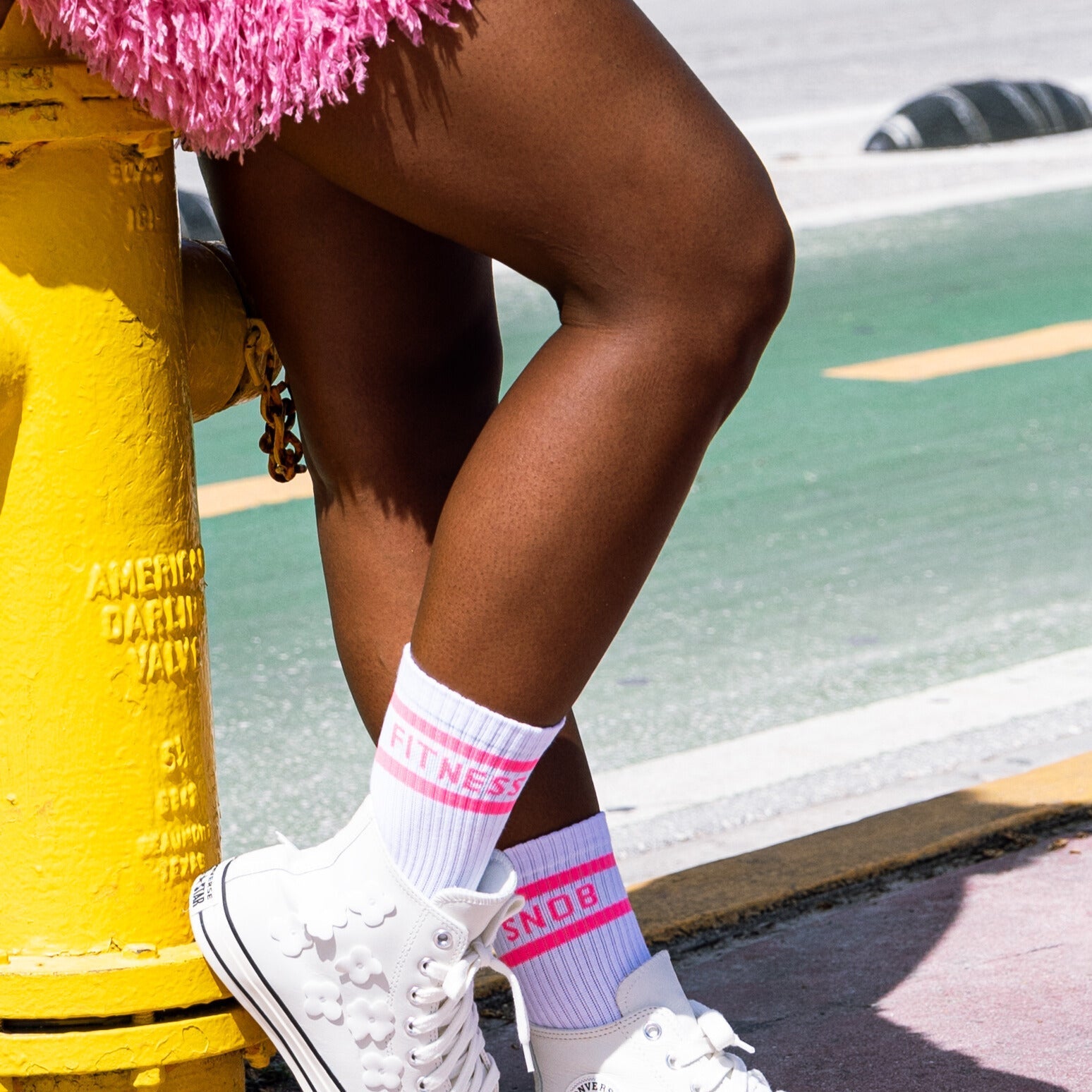 Just like your friend crew, you’ve got your sock staples and they too should be anything but basic. From fashion to function, Not Your Basic Crew is perfect for everyday wear or any fitness class. They are the fashionable staple that your fitness wardrobe needs. People will be able to tell by your swag that you and your crew are anything but basic! Plus, when the blue lights come on in class, you’ll glow “Fitness Snob”.
